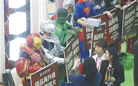 “钢铁侠”、“绿巨人”等超级英雄举广告牌
